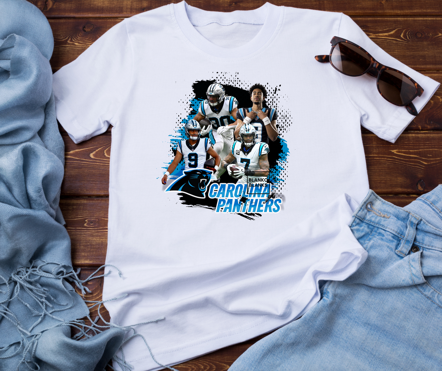 Are you tired of pressing on just white garments for sublimation. Are you tired of weeding using vinyl. Try our Carolina Panthers DTF Transfers! No weeding required, Less Mess! Get your garment and press!!